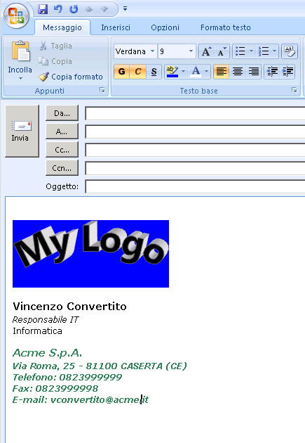 Normalmente in Active directory vengono salvate poche informazioni come nome e cognome, ma è possibile salvare molte più informazioni che possono essere utilizzate per creare automaticamente una firma completa senza che l’utente debba inserire alcuna informazione.