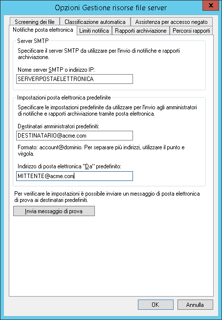 Volendo potete anche abilitare, nella sezione messaggio di posta elettronica, l’invio degli avvisi all’amministratore di sistema cosicché al primo tentativo del ransomware di crittografare un file della rete sarà lanciata un’e-mail di avviso.